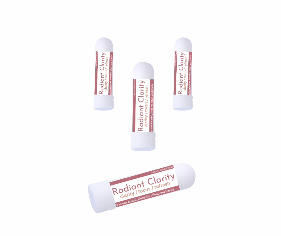 Radiant Clarity Inhaler is a natural support tool designed to help women experiencing menopausal brain fog, difficulty focusing, and mental fatigue. With a balanced blend of Rosemary, Geranium Rose, Clary Sage, Frankincense, and Basil, this portable inhaler provides a convenient way to refresh the mind, sharpen clarity, and restore balance throughout the day.
